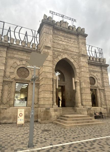 Derbent híres Krepostnoj Rynok (Крепостной рынок, magyarul: Erőd melletti piac) épülete - A 19. század végén – 20. század elején épült, keleties, neomór stílusjegyekkel, díszes kapuzattal és erődítményszerű homlokzattal. Neve onnan ered, hogy a közeli Naryn-Kala erőd közelében helyezkedik el. A „Krepostnoj Rynok” sokáig a város legfontosabb fedett piaca volt, ahol fűszerektől kezdve szőnyegeken és helyi termékeken át minden kapható volt. Ma részben átalakítva működik: üzletek, ékszerboltok, kávézók kaptak helyet benne, de megőrizte történelmi hangulatát, így a helyiek és a turisták számára is különleges pont Derbentben. - Ata fotója