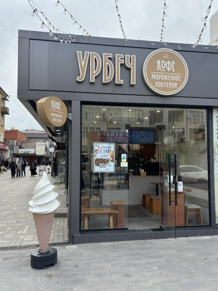 A forró italok - főként a kávé - mandulás és mogyorókrémes amit Раф-nak neveznek de alapanyaga a selymes lágy krém az Урбеч. Elmentem Mahacskala legkedveltebb fiatalok által kedvelt РАФ helyére. Hogy is hívhatnák másképp a helyet mint Urbecsnek! (Ata, 2025)