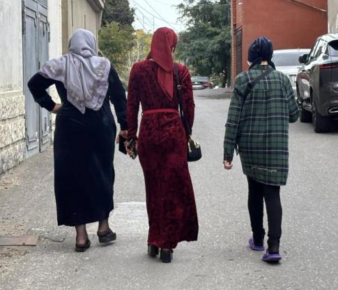 Dagesztánban a lányok általában serdülőkortól, nagyjából 12–14 éves kortól kezdenek fejkendőt hordani, főként vallási és hagyományos okokból. - Ata fotója
