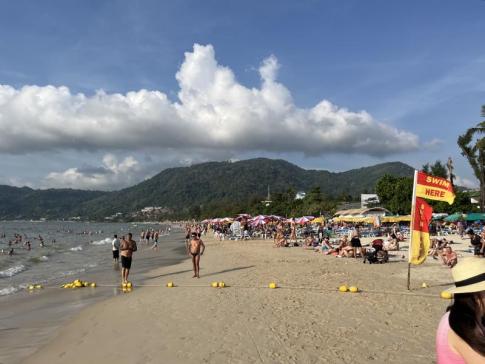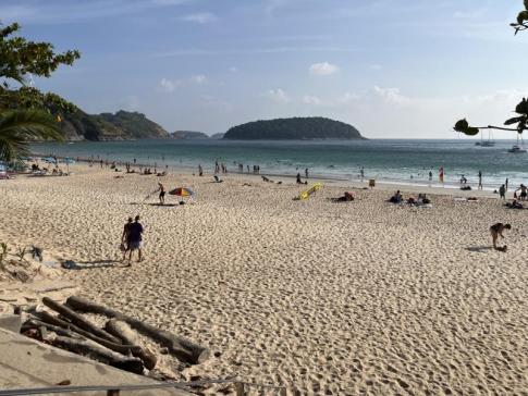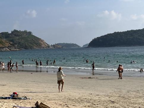 A szigeten vannak ennél szebbek, és főleg tisztábbak, természetesebbek. Azért a víz finom meleg és sokaknak ez, valamint a napsugár bőven elég az örömhöz. A homok finom, a vízben nincsenek kövek. Pozitívum, hogy vannak árnyékos részei. Negatívum, hogy sok a nyomulós mozgóárus és a zajos orosz. Mondjuk, az oroszok néha annyira röhejesen viselkednek, hogy az már szórakoztató. Baj az is, hogy a strand napozós része nincs megfelelően elválasztva a vizi sportos tevékenységektől. Dagálykor a part nagyon szűkké válik. Tömegturistás strand. van aki az ilyet kifejezetten szereti, van, aki egyáltalán nem. Viszont Patong strandjaihoz képest ez csodás, és sokan jönnek ide strandolni Patong hoteljeinek vendégei közül.