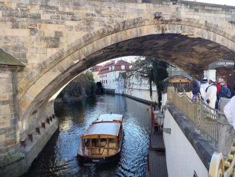 Ez a fotó a Károly híd (Karlův most) alatti kis csatornánál, a Čertovka-pataknál, vagyis a Kampa-sziget és a Mala Strana (Kisoldal) közötti vízágban készült. A képen látható fából készült hajó az úgynevezett „Prague Venice” városnéző hajójárat egyike, amely a Moldva folyó mellett ezen a hangulatos, velencei jellegű csatornán is körbeviszi a látogatókat. - H. M. fotója