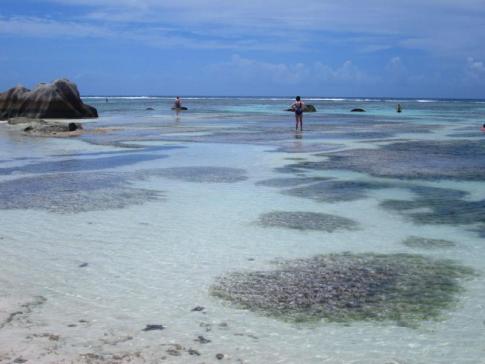 A strandok közül az Anse Patates lenyűgöző, de nagy hullámokkal, így nem ideális úszásra. Az Anse Severe kissé jobb, de csak apálykor. A híres Anse Source D’Argent első látogatáskor csalódást okozott az apály miatt, de másnap a dagály idején valóságos paradicsomnak tűnt, minden árnyalatában kék vízzel és csodás sziklákkal.