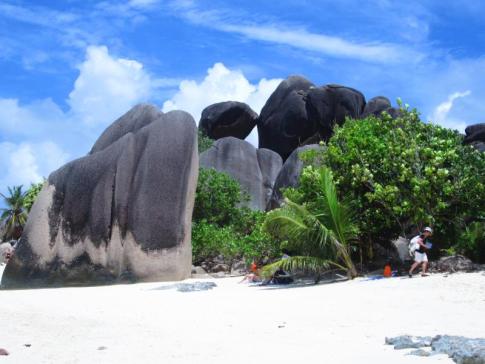 Az Anse Source d'Argent strand páratlan szépsége a gránitsziklákkal, sekély türkizkék vízzel és pálmafákkal, ami a világ egyik legtöbbet fotózott tengerpartja.