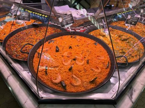 Étel fronton a híres paellát kell kiemelni, ami valenciai eredetű. Ennek eredeti változata csirkével és nyúllal készül, manapság már mindenféle tengeri vackokkal is elrontják készítik. Fontos tudni, hogy az igazi helyek kizárólag délben szolgálnak fel paellát, így ne tervezzünk vacsorát. Helyette próbáljuk ki a tapast, melynek kisebb adagjaiból magunknak válogathatjuk össze a fogásokat. Minél több ember vesz részt, annál többféle fogást tudunk kipróbálni. A katedrális közelében jártunk olyan étteremben, ahol a pultra kitett falatok közül lehet válogatni, majd a fogpiszkálók alapján darabra fizetni. Készüljünk fel, hogy a spanyolok igen későn, 9-10 óra körül vacsoráznak, így akinek 7-kor már korog a gyomra, valamilyen áthidaló megoldást kell találnia. (2022) forrás