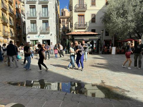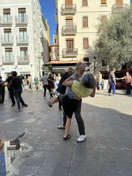 Napsütéses vasárnap déelőtt utcai társas örömtánc (salsa, swing stb.) a Plaza del Tossal nevű kis téren az El Carmen városrészben. - Lantos Anikó fotói