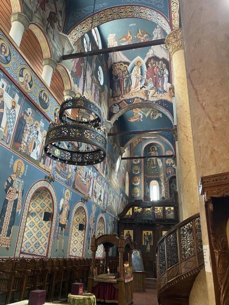 A Szent Miklós-templom (Crkva Svetog Nikole) csodás kék hátterű bizánci freskói
