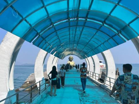 A Koh Samed-i kompkikötőben - Ez Phra Aphai Mani legendájának tengeri hercegnője (Nang Phisuea Samut), egy híres thai eposz alakja. A szobor a Koh Samed-hez kötődő mítoszt jelképezi, és a sziget „védelmezőjeként” áll a kikötőnél. Elég félelmetes a vigyora. - K. Kriszta fotója