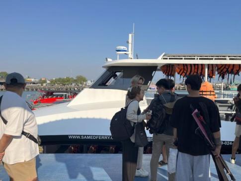 Pattayáról egyik nap a Koh Samet, egyes források szerint Koh Samed szigetre mentünk az orosz társasággal. A kikötőig 80 km az út, 2-3 sávos osztottpályás útvonalon haladtunk. Érdekes, még a 4 sávos osztottpályás utakon is van visszafordulást lehetővé tevő sáv. A kikötőben sokat kellett várni a beszállásra. Addigra a beérkező nyolc darab 12 fős busz utasaival elég sokra nőtt a számunk. A 25-30 évkörüli kísérőnk egy szót nem beszélt angolul. Várakozás közben ötpercenként nagy durrogás támadt, hangoltak a fiúk a kínai új év megmozdulásaira. A nagy parkoló útfelülete tele volt eldurrant patronokkal.