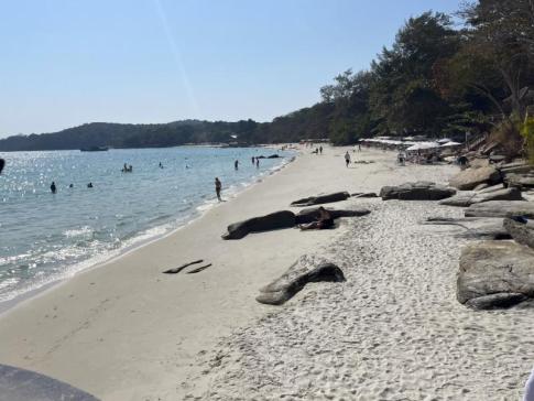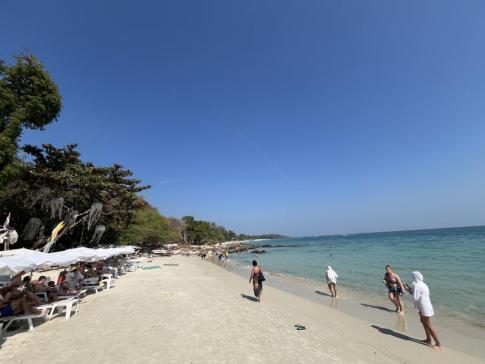 Pattayáról indultunk Koh Samet-re egy egynapos kirándulásra. Nem komppal, hanem motorcsónakkal mentünk át, ami gyorsabb és kényelmesebb megoldás. A sziget fő strandjára, Sai Kaew Beach-re érkeztünk, ami a helyi forgatag központja. A strandot sok helyen a sziget legszebbjeként említik, de 2024-ben már rendkívül zsúfolt, különösen a hétvégéken és a kínai turisták jelenléte miatt. Bár a strand természeti szépsége megmaradt, a tömeg sokak számára zavaró lehet.