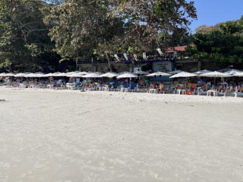 Ez a strand az egyik legszebb, amit 25 évnyi thaiföldi utazás során láttunk. Jelenleg nagyon zsúfolt, de szerencsére elég nagy ahhoz, hogy ne sűrűsödjön a tömeg. (2024)