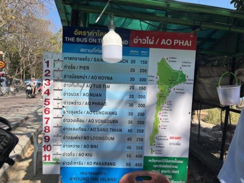 Motorbérlés: A motor bérlése 300 baht/óra vagy 500 baht/nap áron lehetséges. Általában a szálláshelyen is bérelhető, és nem szükséges útlevelet vagy letétet hagyni, illetve nem is tanácsos.