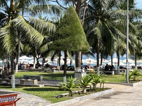 A strand a napágyakkal és napfürdőzőkkel telezsúfolt homokpadon túl parkosított: gyerekek, sétálgatók, futók és mozgó árusok adják a hangulatát. A part elég hosszú, és a vietnámiak meg a nyugati turisták szigorúan elkülönülnek, mintha lenne egy láthatatlan határvonal köztük. Maga Na Trang nem sok izgalmat tartogat, semmi különös nem történik az emberrel. Mi minden nap más éttermet próbáltunk ki, ettünk közepes indiai és olasz kaját, de egészen zseniális pho-t is, vagyis vietnámi tésztalevest.