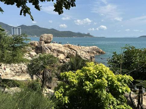 ,, Nha Trang hosszan kiépített, homokos tengerparttal rendelkezik. Emiatt, és a hatalmas hullámok miatt a sima strandoláson kívül nehéz olyan partot találni, ahol sznorkelezni (szabadtüdős búvàrkodàs) lehetne. Mi kitartóan kutattunk, és talàltunk egy szép szakaszt, ami erre alkalmas volt. A part neve Bai Tien, és kevesen ismerik, halászokon kívül mind a kétszer csak egyedül voltunk. Gyönyörű, színes halakat, tengeri csillagokat és korallokat figyelhettünk meg. Később, nagy bánatunkra, a monszun évszaknak köszönhetően a szél felkorbácsolta a hullámokat, így a víz alkalmatlan lett a sznorkelezésre a lecsökkent látótávolság miatt. (2020)" forrás